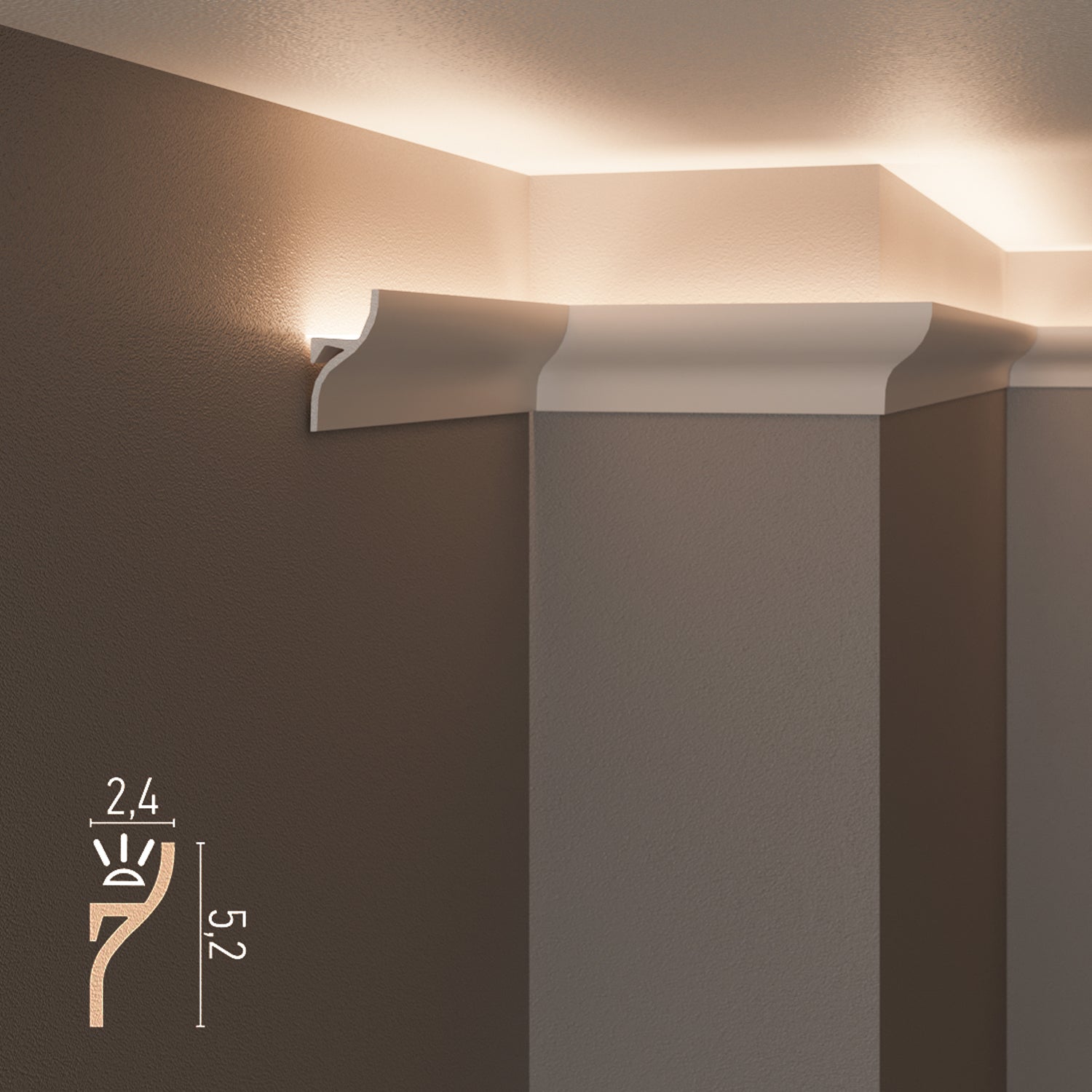 Cornici per illuminazione indiretta con le strisce led a soffitto o parete.