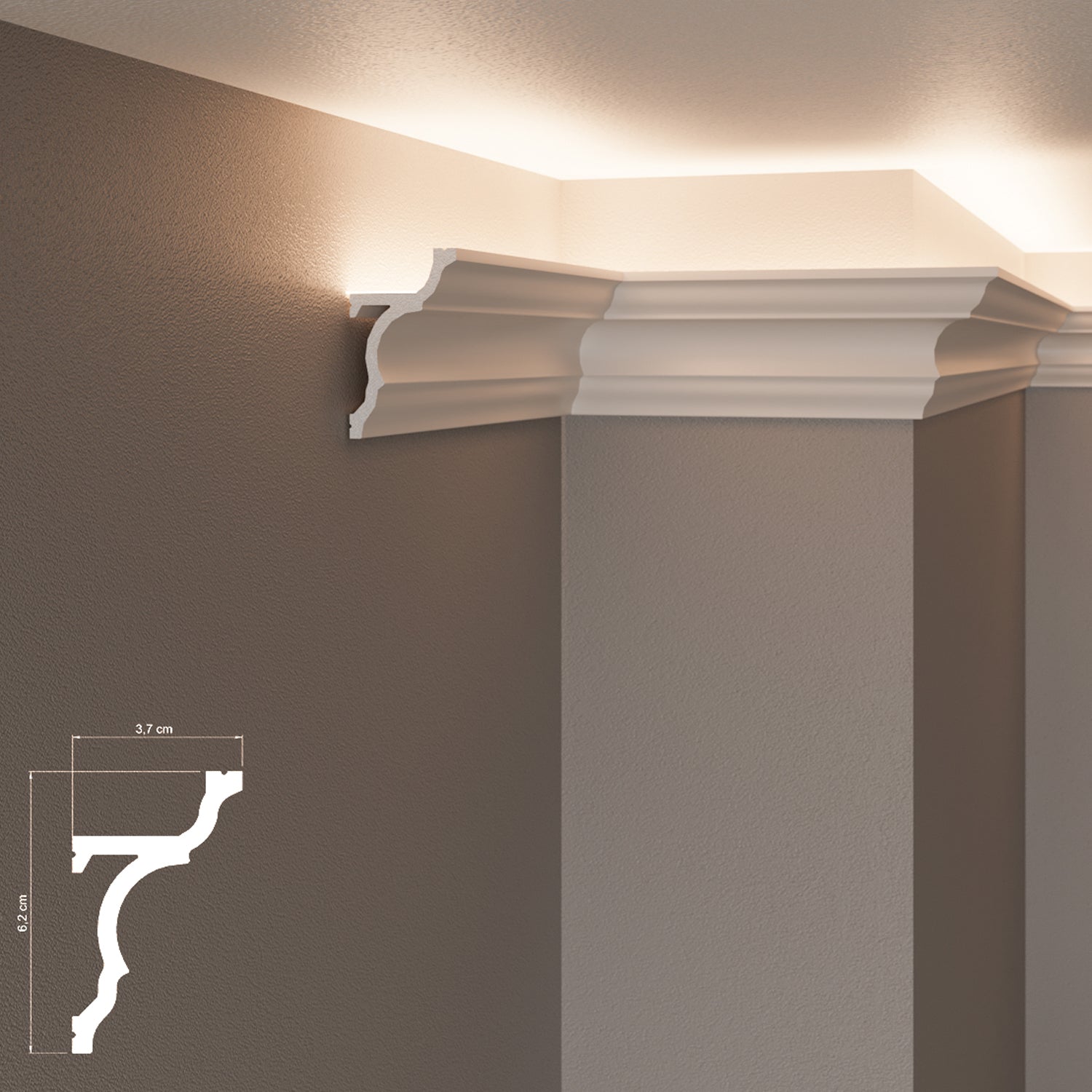 Cornici per illuminazione indiretta con le strisce led a soffitto o parete.